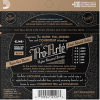 Pro-Arte, the world's most popular classical strings are D'Addario's premium classical guitar string sets. All Pro-Arte treble strings are sorted by a sophisticated computer-controlled laser machine which performs diameter and tension measurements, ensuring true-sounding, precise trebles in every set. Pro-Arte basses are wound using silver-plated copper on a multi-filament nylon core for consistent and warm, yet projecting tone.