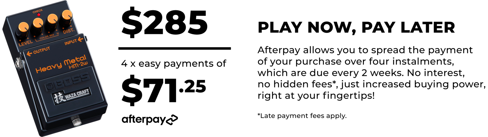 Make your first payment on that slick new piece you've been thirsting over today and pay the rest over 6 weeks, interest-free when you pay it in 4.