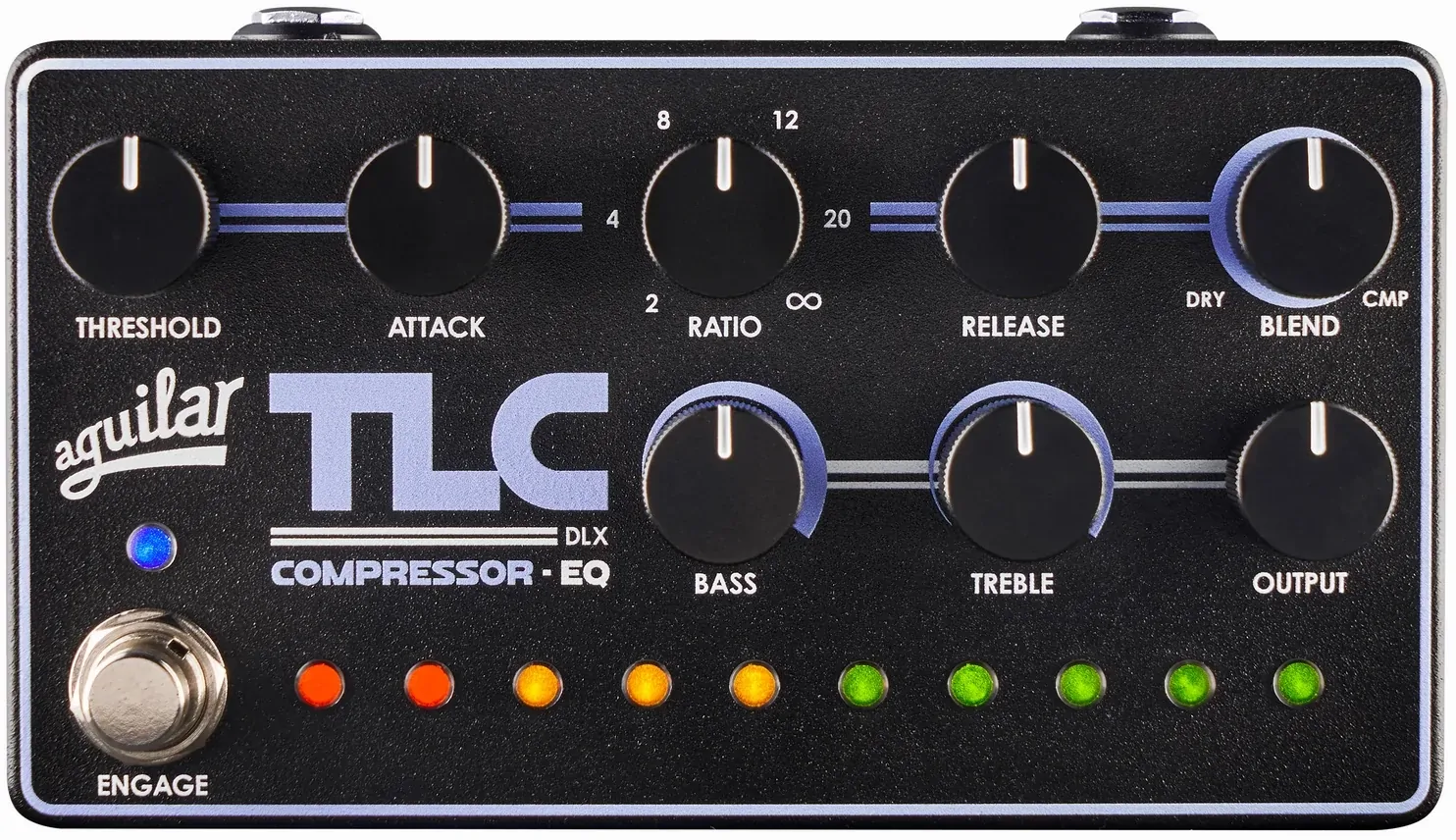 Once compression is set, the TLC DLX provides integrated tone shaping with Bass and Treble boost-only EQ inspired by Aguilar’s classic DB 925 boost circuits.