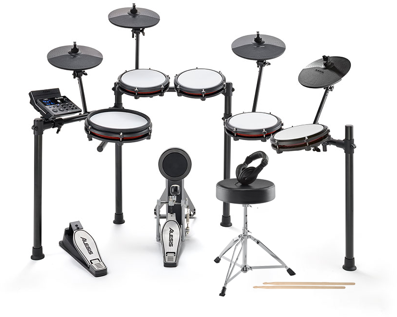 Please note: This electronic drum kit bundle includes an Alesis Nitro Max drum kit, an Alesis Nitro Max Expansion set, and an Alesis Throne and Headphone pack.