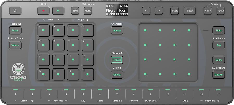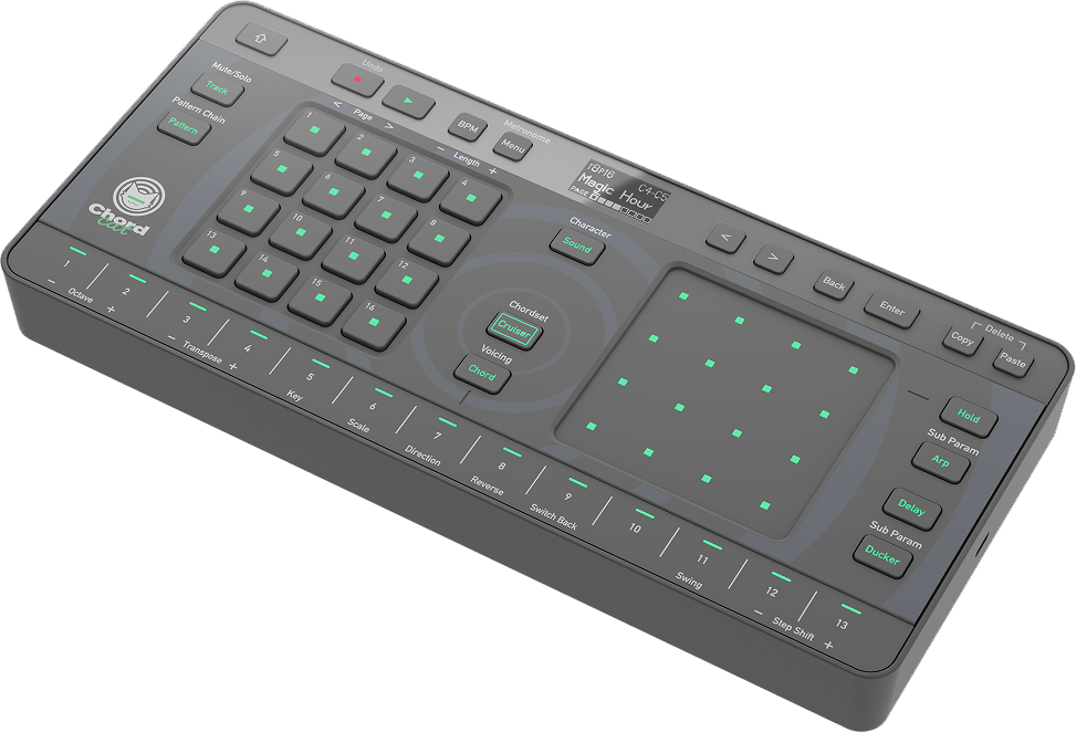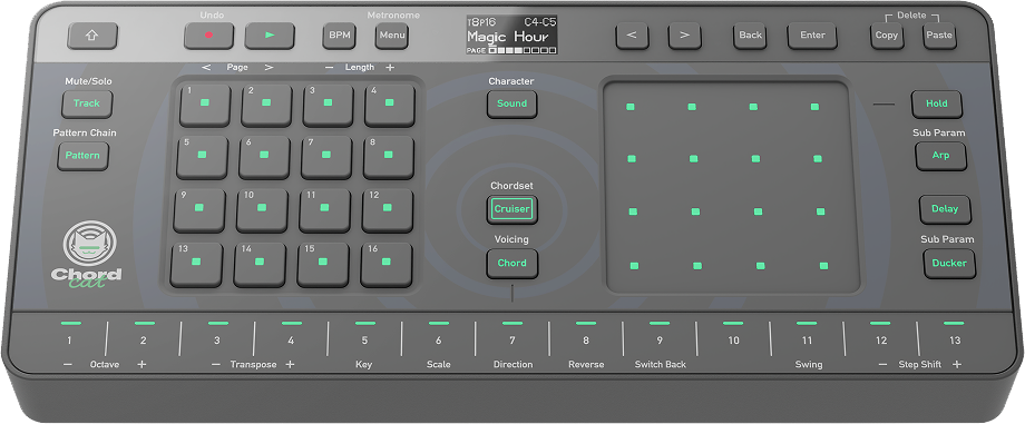 Put the groovebox in Chord Cruiser mode, and an exclusive algorithm selects and suggests multiple musically compatible chords from its database. You can listen to these chords and assign your favorite to a keyboard, triggering the next suggestion automatically.
