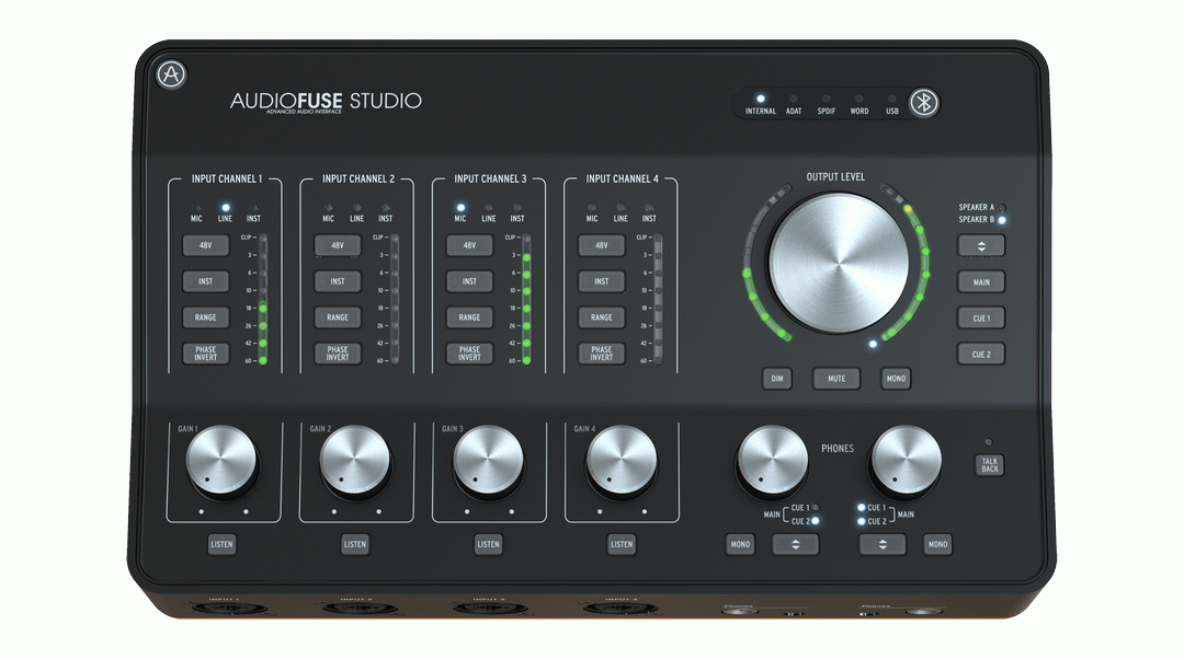 A cutting edge interface for the modern producer, combining 4 exceptionally detailed preamps, perfect conversion, a total monitor solution, and even Bluetooth audio. Whatever creative challenge you face, AudioFuse Studio will help you master it.