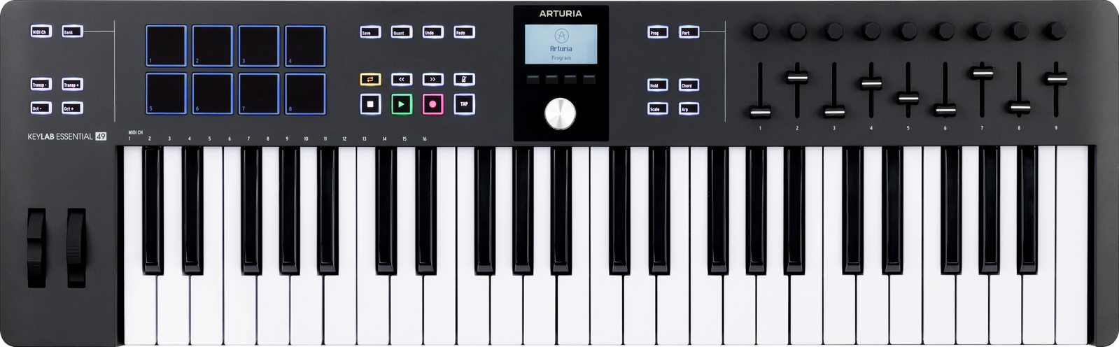 KeyLab Essential provides an array of useful & intuitive controls that’ll get the job done. Interact with encoders, faders, pads, and more in a way that makes sense for your setup, giving you a hands-on experience balanced with software flexibility.