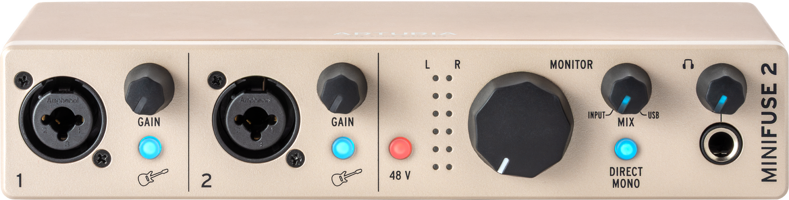 The MiniFuse 2 Champagne is a compact USB audio interface that lets you easily record instruments, vocals, and application audio with professional sound quality and a fresh limited-edition finish, backed by a 5-year warranty.