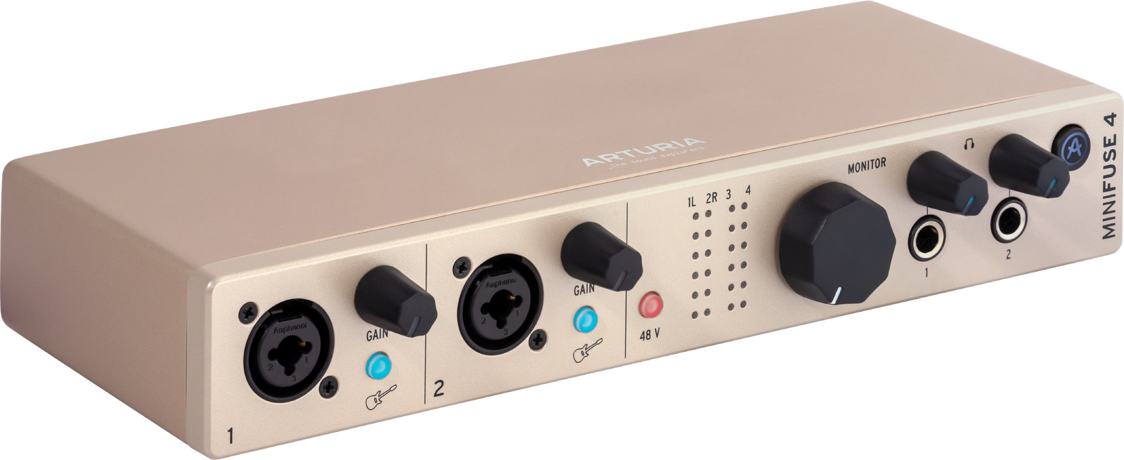 The MiniFuse 4 Champagne is a compact USB audio interface that lets you easily record instruments, vocals, and application audio with professional sound quality and a fresh limited-edition finish, backed by a 5-year warranty.