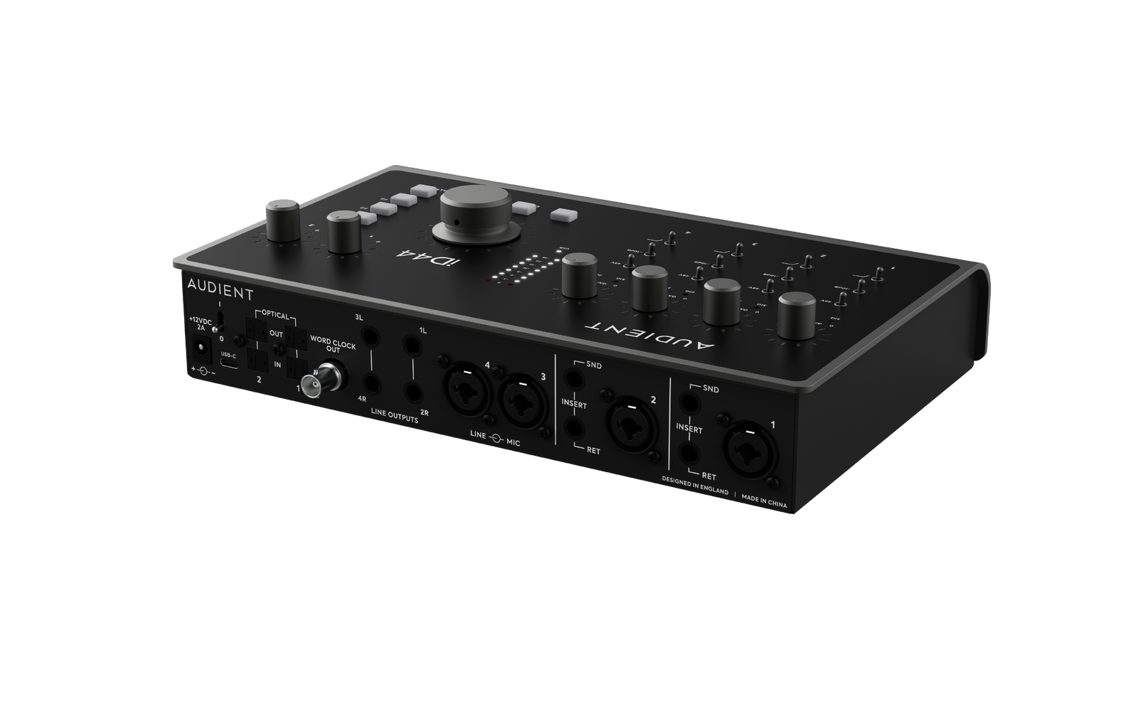 Introducing iD44, the audio interface made for producers and engineers. Featuring four Audient Console Mic Preamps, Advanced 32-bit AD/DA Converters and two fully balanced analogue inserts - iD44 effortlessly combines astonishing audio performance with ease of use. Add to that professional must have features like dual headphone outputs, ADAT expandability and customisable monitor control, iD44 makes getting studio quality results easy.
