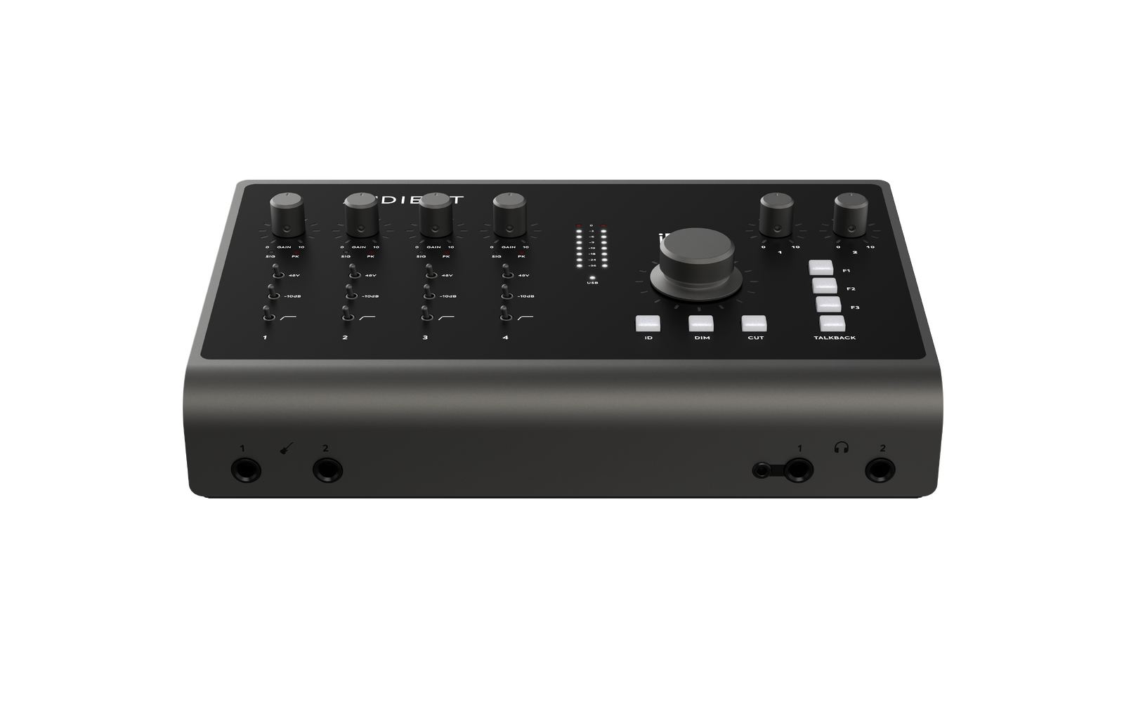 iD44 is equipped with both a dedicated Dim and Mute button, letting you quickly cut your audio or talk with an artist - all without having to dive into software.