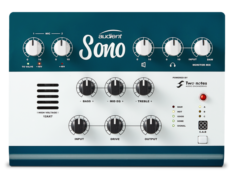 Sono is the ultimate audio interface for guitarists and musicians, combining Audient’s award winning analogue recording technology with the world’s best speaker-cab simulation from Two notes.