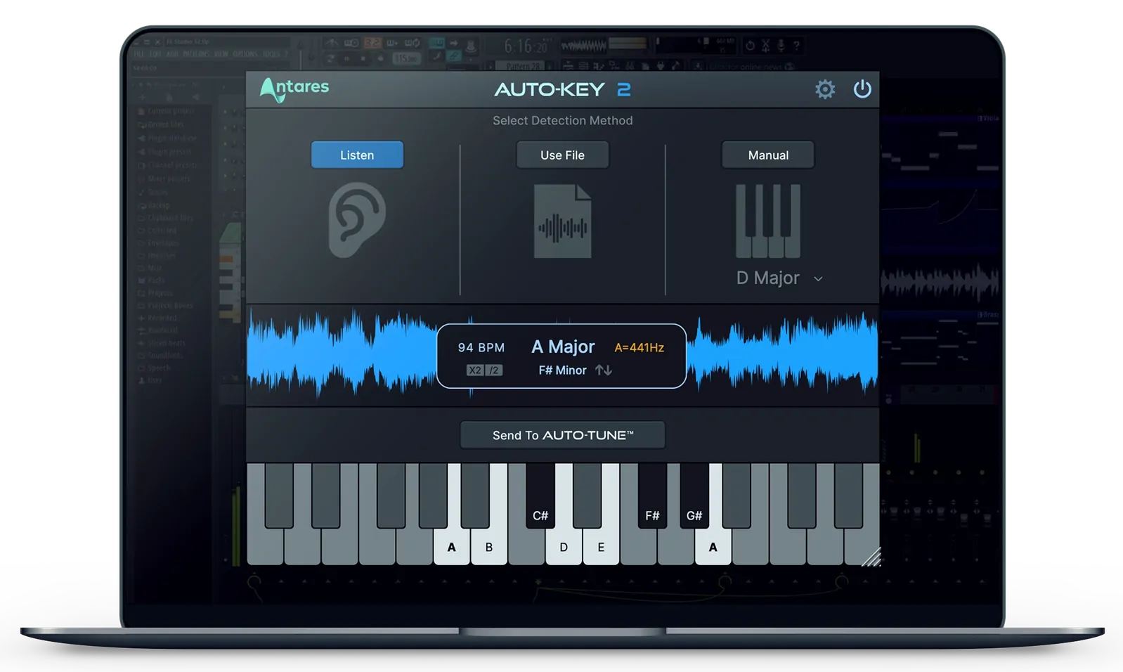 Drop any track, let AutoKey 2 find the key/scale/tempo, then push the settings straight to AutoTune with one click.