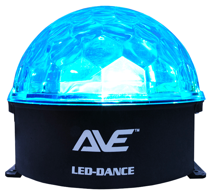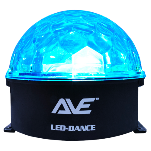 The LED-Dance is a bright and colourful light effect that emits coloured beams and an ambient glow from the clear patterned dome. This effect can be placed on any flat surface or mounted via the 2 mounting ears located on the bottom of the fixture.