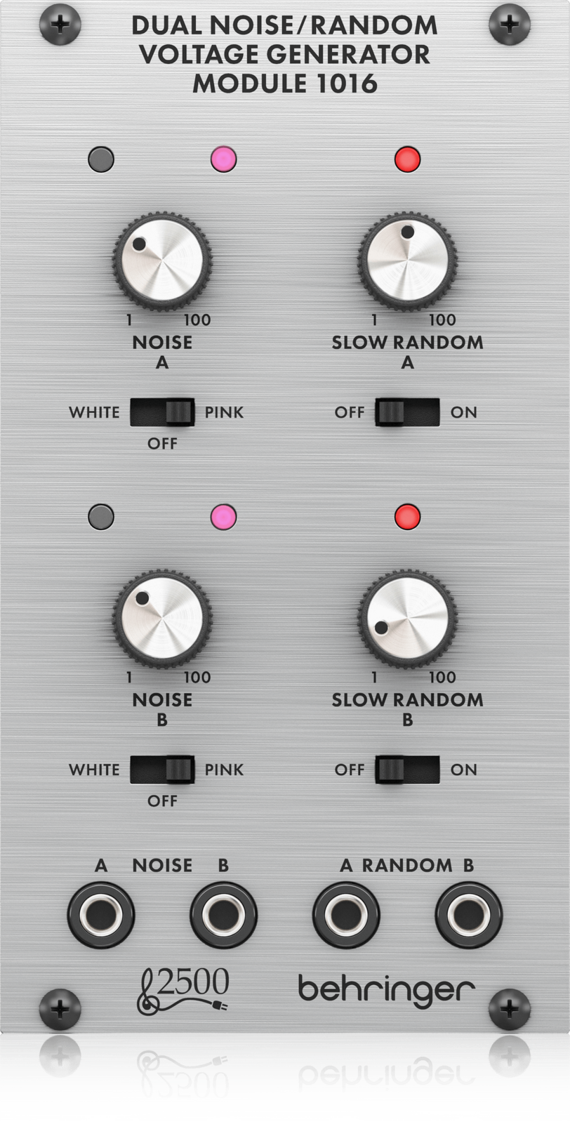 This is the Behringer 2500 series DUAL NOISE/RANDOM VOLTAGE MODULE 1016. An authentic reproduction of the original “System 2500” circuitry from the 70’s that can fit in a standard Eurorack case. The best part? It’s at a very affordable price. Mix the DUAL NOISE/RANDOM VOLTAGE MODULE 1016 in with your existing rig or start your modular synth journey from here. Either way you’re sure to have a lot of fun.