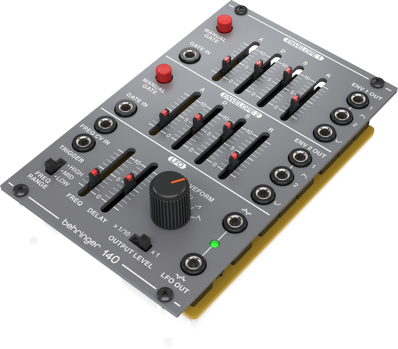 This is the Behringer SYSTEM 100 140 DUAL ENVELOPE/LFO. An authentic reproduction of the original “System 100M” circuitry from the 80’s that can fit in a standard Eurorack case. The best part? It’s at a very affordable price. Mix the 140 DUAL ENVELOPE/LFO in with your existing rig or start your modular synth journey from here. Either way you’re sure to have a lot of fun.