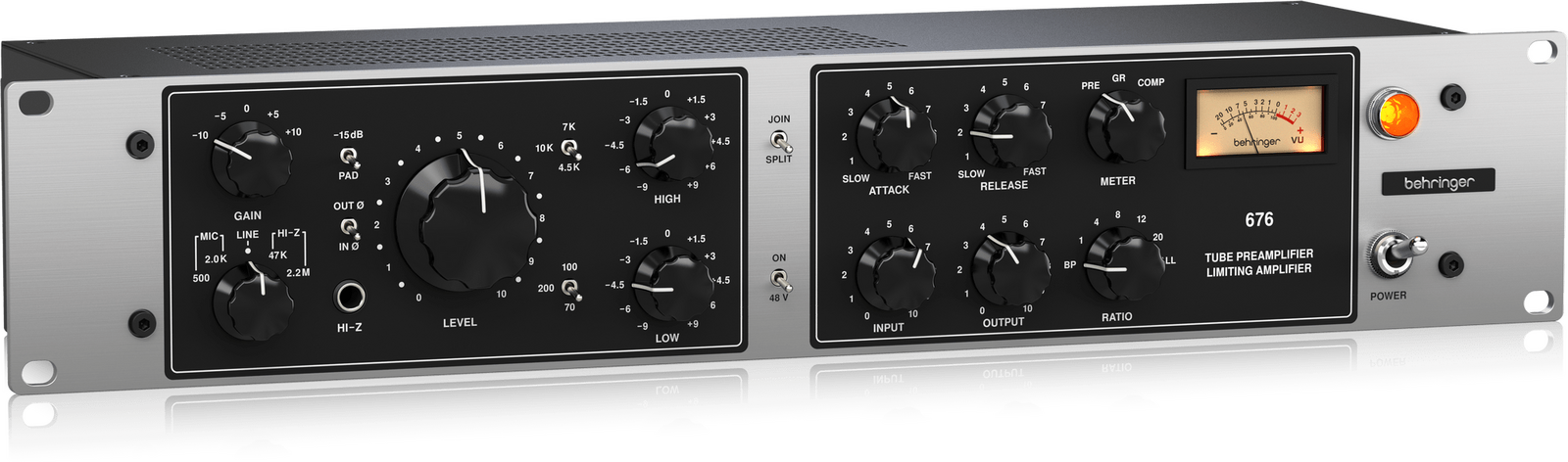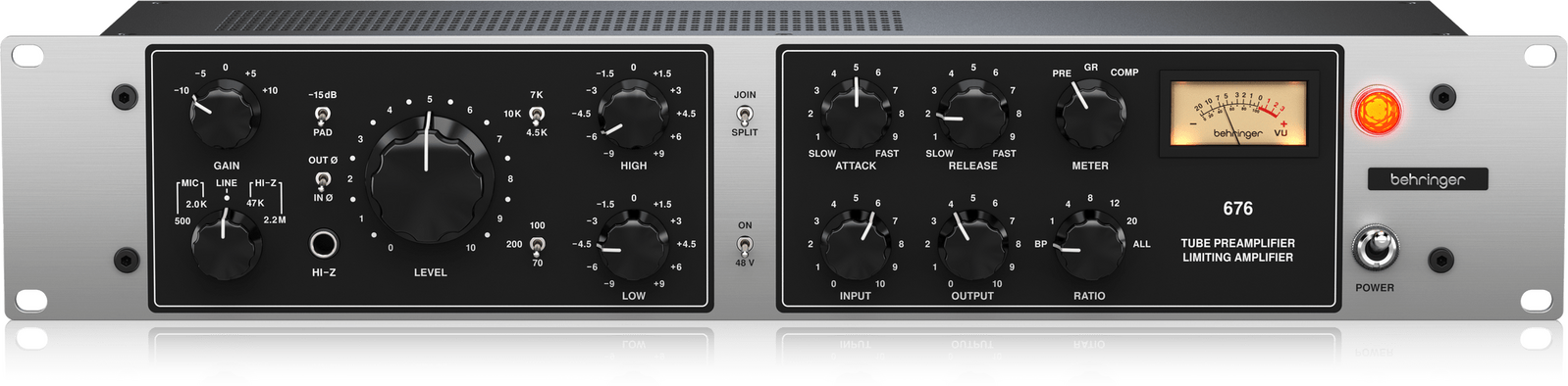 We want to keep that classic alive with the Behringer 676, a classic mic/line tube preamp and compressor with custom-built Midas transformers, premium 12AX7/ECC83S and 12AT7/6072 tubes for a warm and rich sound. In just a single rack unit, the 676 provides a versatile range of tonal possibilities that can bring that same timeless quality to any recording.