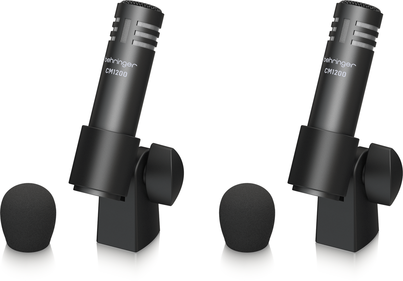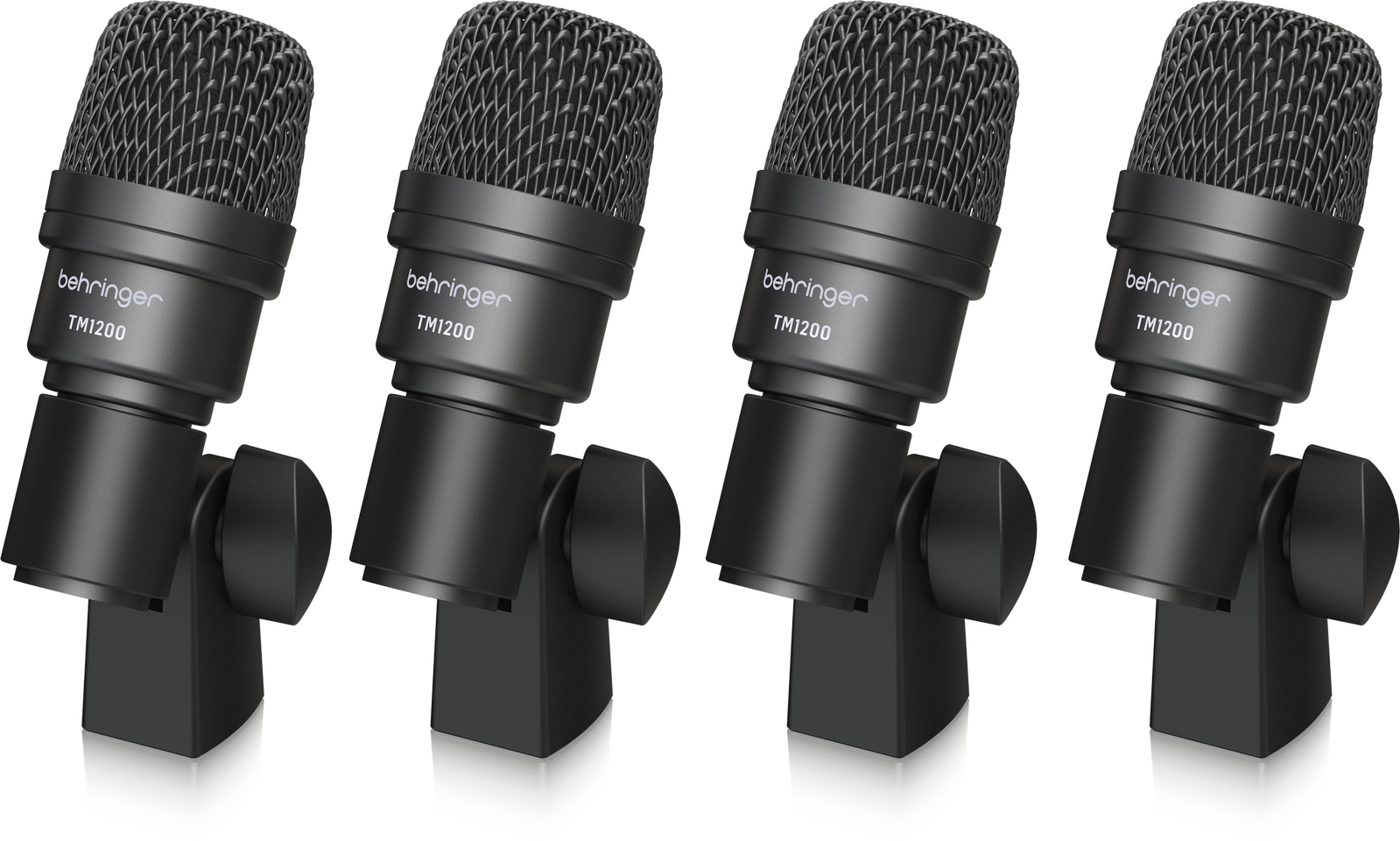 The TM1200 medium diaphragm dynamic capsules are especially tuned for toms and snares. Mount clamps onto each mic then attach each of them onto the hoop of a tom or snare drum. The angle and distance from mic to drumhead is adjustable. Position each toward the center of the drumhead for best results.