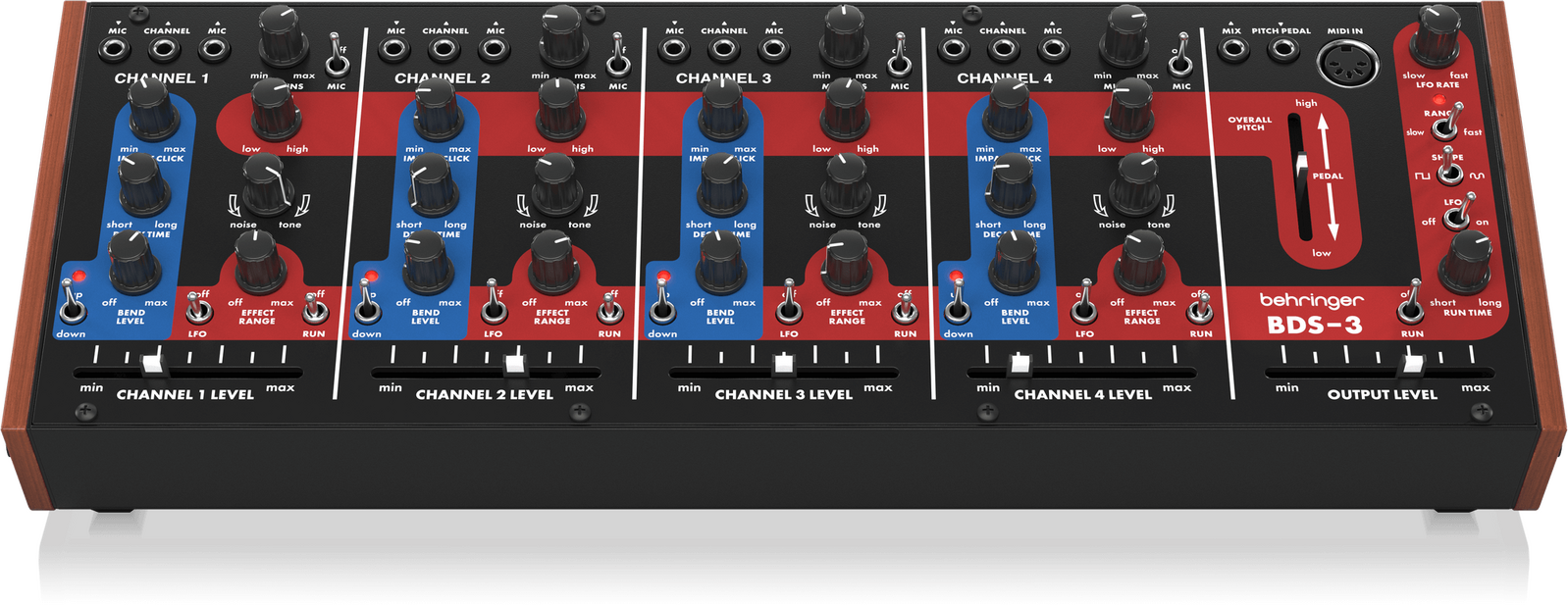Back in the late seventies, drum synthesis was opening new creative frontiers. Among the early pioneers, one machine stood out for its bold approach to percussive sound design. It allowed creators to trigger synth textures from any audio signal, transforming a simple mic’d drum into a powerful and expressive percussion instrument. Today, that philosophy lives on. In a world where classic units have become rare collector pieces, we’re committed to bringing that spirit back, offering a fresh and inspiring way to add synthesized percussions to your music. This is the Behringer BDS 3.