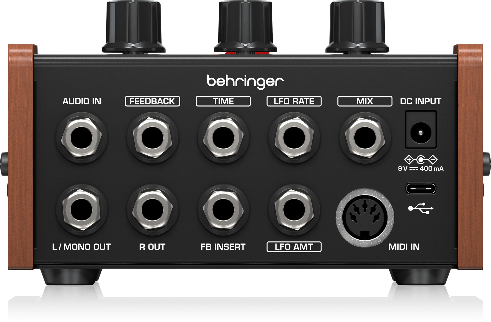 Beyond the familiar sounds lies an expressive control layout designed for sonic sculpting. Shape your tone with adjustable Drive and Output Level for analog-style saturation, or blend dry and wet signals to taste. A six-shape LFO selector lets you modulate Rate, Amount, Delay, and Feedback in highly creative ways—while a dedicated tap-tempo footswitch keeps your modulation locked to the groove.