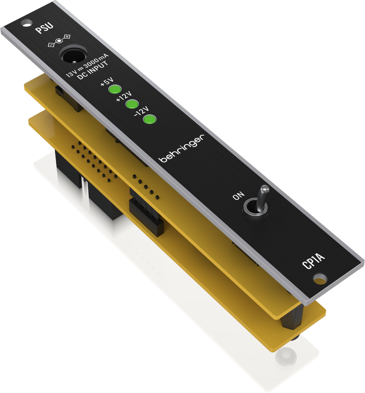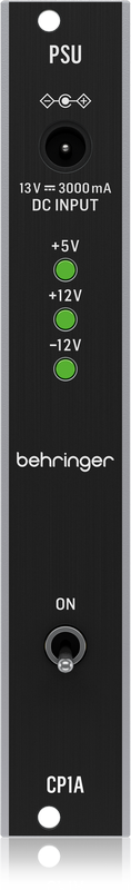 Enter the Behringer CP1A Module. A high-performance, ultra-low noise power supply. Easy activation of this module is facilitated by a toggle switch. There are 3 LED Indicators available for each power rail as well as a DC Input. Its narrow design helps it seamlessly fit in your modular synth.