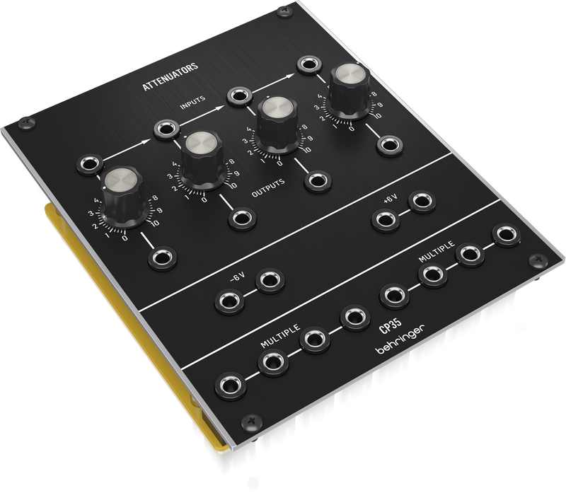 Enter the Behringer CP35 ATTENUATORS Module. An authentic reproduction of the circuitry from the “Modular 55, 35 and 15” Series used by the world’s most famous pop, rock and jazz musicians. Now, musicians can build their very own, unique, synthesizer that can fit in a standard Eurorack case for a very affordable price. Mix and match specific modules to create your personal, unique synth to complement the music you play or go all out and fill a room, from floor to ceiling, with modules that’ll fulfill any synth geek’s wildest dream.