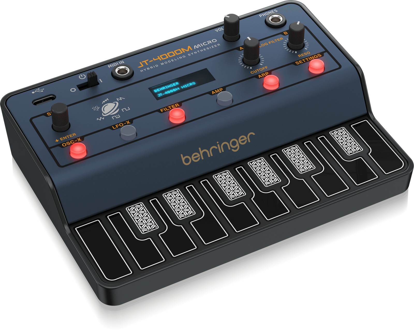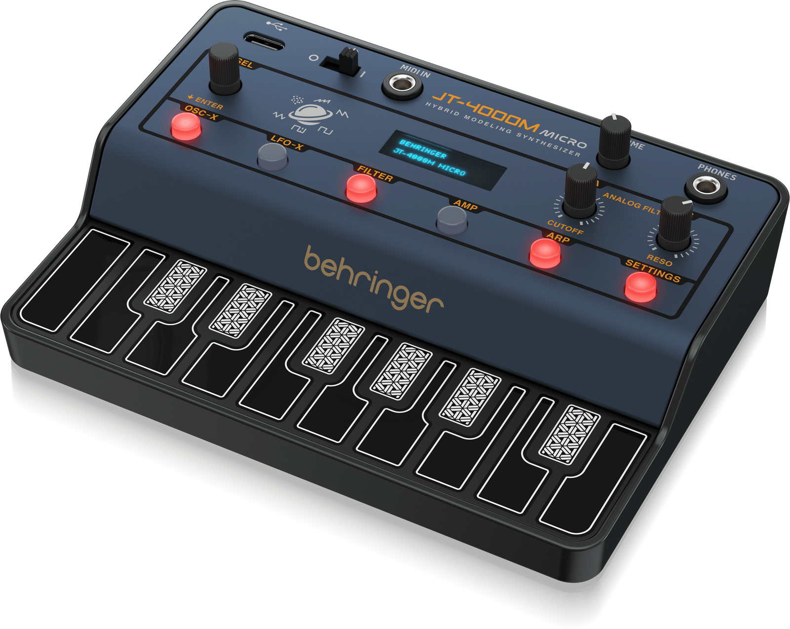 Be ready to jam anytime, anywhere with the Behringer JT-4000M MICRO, a super portable programmable 4-voice hybrid synth that comes with 2 multi-mode analog modelling oscillators per voice. Whether you’re in a cramped bar or travelling, you can have a powerful synth with you whenever the mood strikes you.