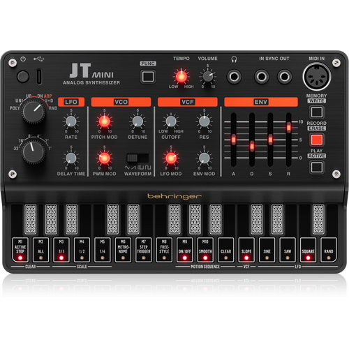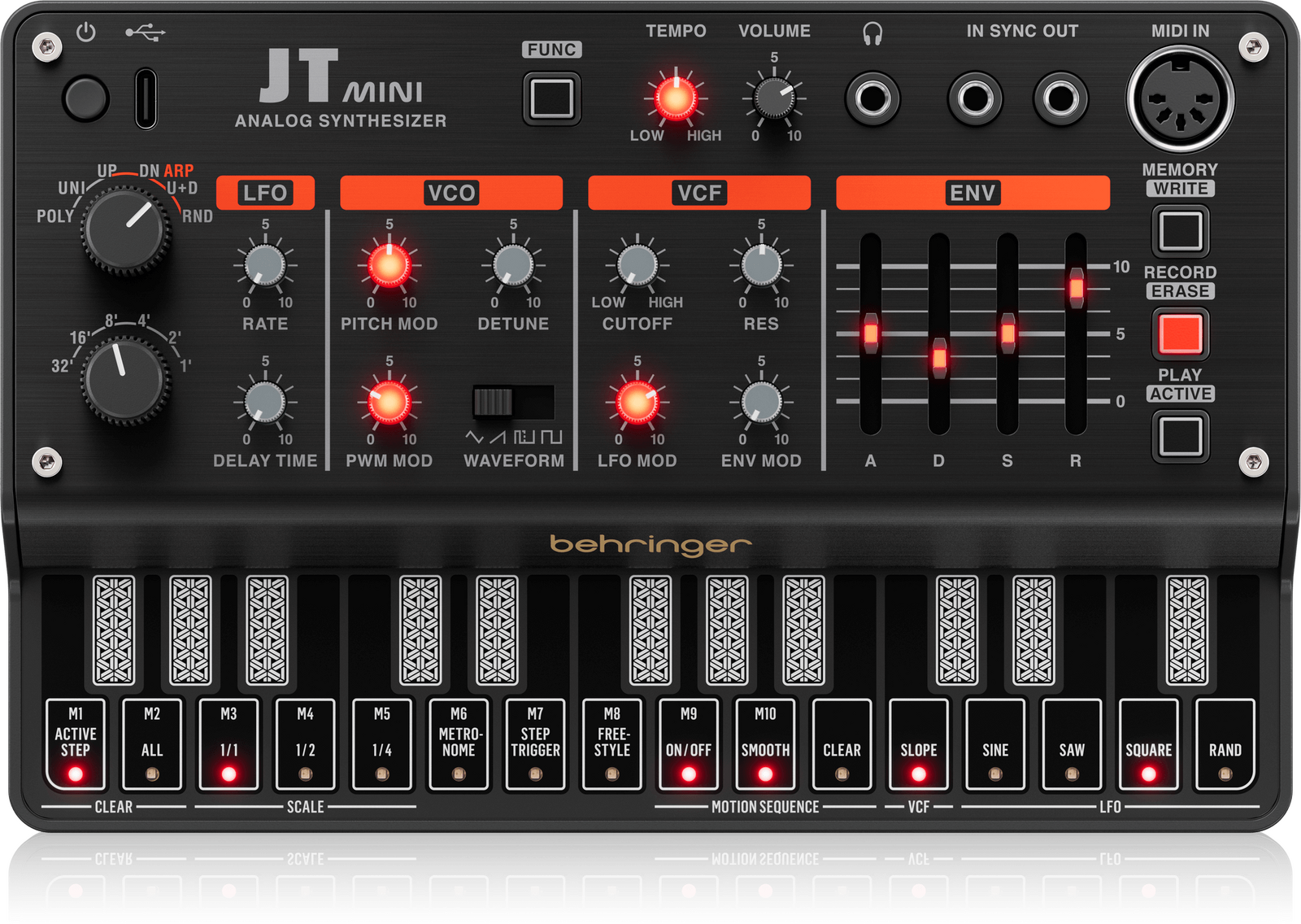 Whether you’re looking for a synth that’ll be right there with you when inspiration hits, or one to round out your gear, the Behringer JT MINI is perfect for any synth head looking for that special sauce.