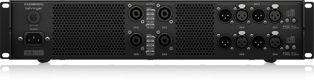 Optimised front-to-back ventilation ensures the amplifier remains cool during extended sessions, making the Behringer KM3600Q a reliable choice for professional audio engineers seeking both power and precision.