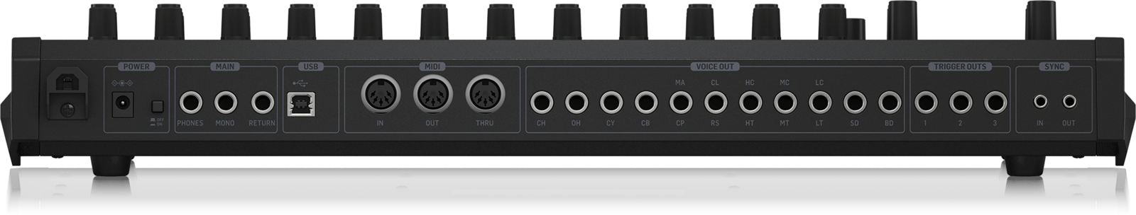 16 independent analog outputs for external processing or recording your rhythms as multi-track audio