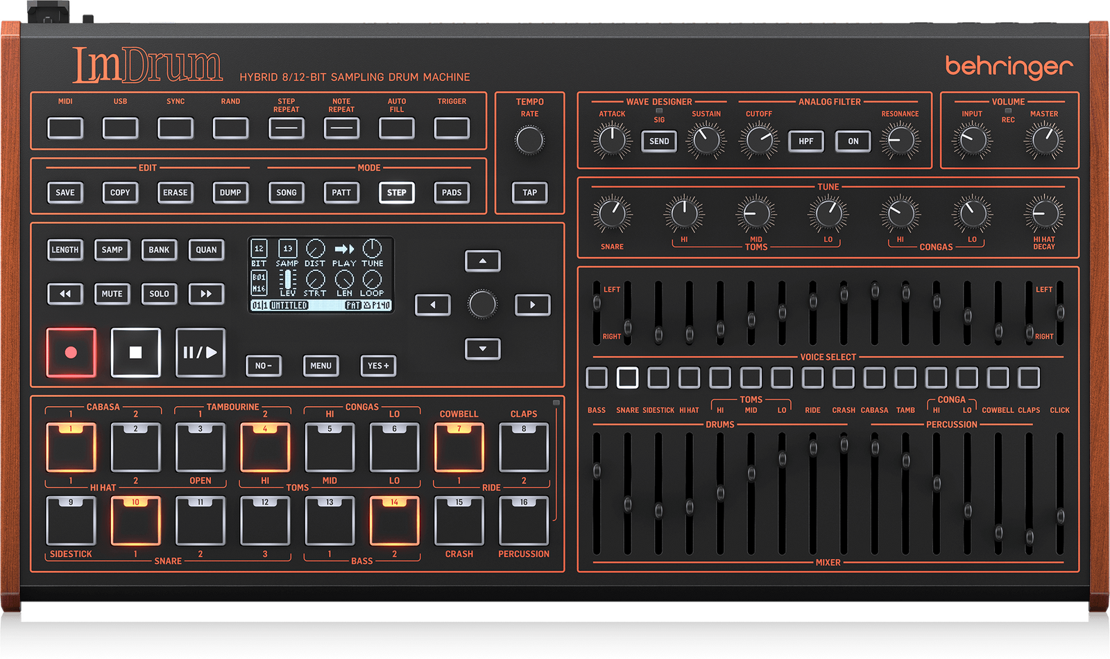 Classic Hybrid Sampling Drum Machine with 109 Drum Sounds, Sample Recording, 64-Step Sequencer, Wave Designer and Dual-Mode Filter
