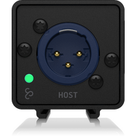StageConnect 32-channel bidirectional audio transmission with sub-millisecond latency at 44.1/48 kHz and 24 bits over standard 3-pin XLR DMX cable, or microphone cable for short distances