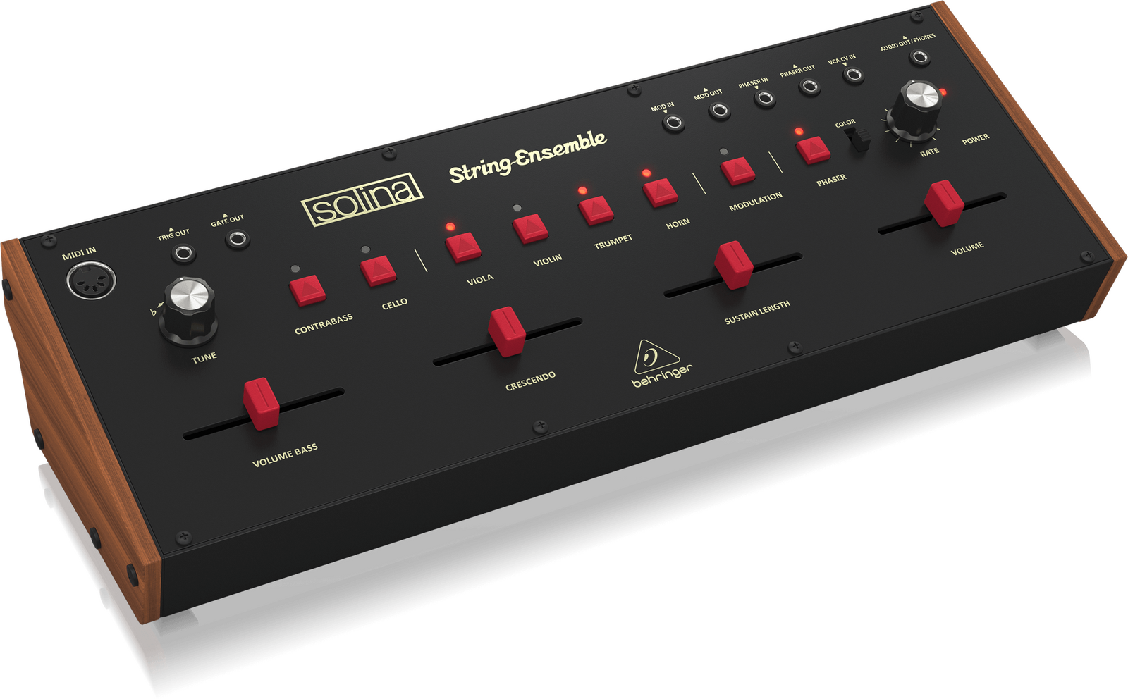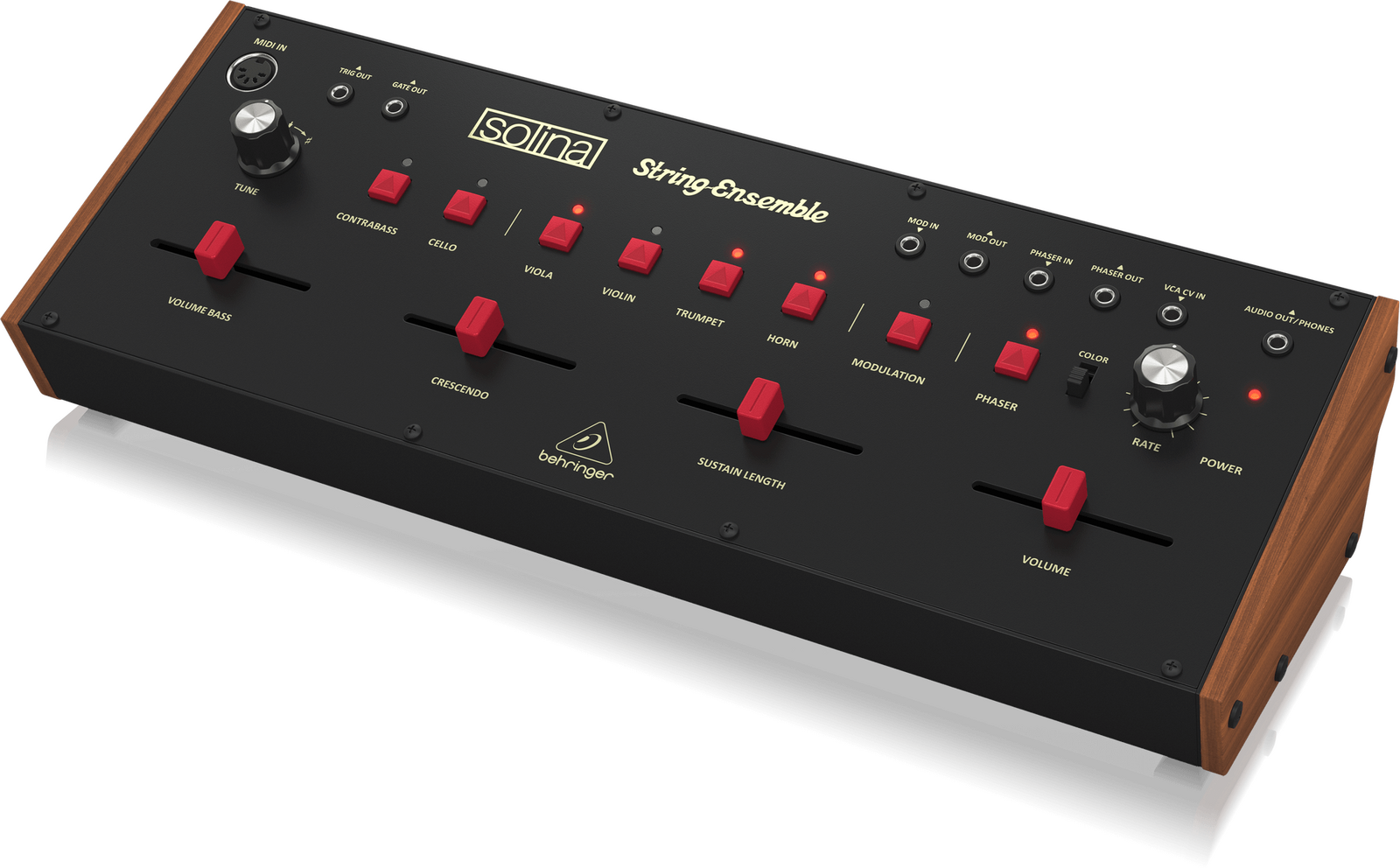 The Behringer SOLINA STRING ENSEMBLE features violin, viola, trumpet, horn, cello and contrabass instruments as well as controls for tuning, crescendo, bass and volume just like the original revision B. It achieves its iconic multi-orchestral sounds through divide-down technology albeit in a more compact enclosure you can easily integrate into your setup.