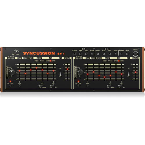 Experience the legendary sound and feel of a classic analog percussion synth with the Behringer SYNCUSSION SY-1. Based on the classic dual analog percussion synthesizer from the ’70s, The original has been used by legendary artists such as Prince, Kraftwerk, and Herbie Hancock. Now, you can have the same dynamic and iconic sound without burning a hole in your pocket!