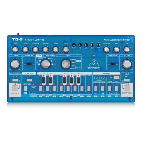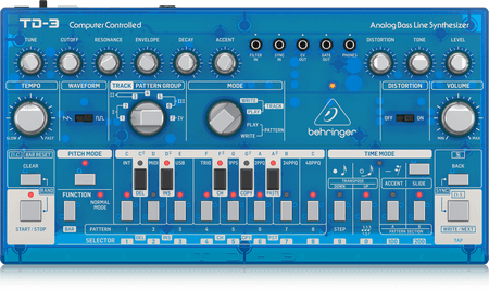 Amazing Bass Line synthesizer with true analog circuitry for bass and groove sounds, Authentic reproduction of original circuitry with matched transistors, Pure analog signal path based on legendary VCO, VCF and VCA designs, Sawtooth and square waveform VCO with transistor wave-shaping circuitry, Amazing 4-pole low-pass resonant filter with cut-off, resonance, envelope, decay and accent controls, Easy-to-use 16-step sequencer with 7 tracks, each with 250 user patterns, Arpeggiator with wide patterns for great sound effects, Distortion circuitry modelled after the DS-1* adds insane spice and edge to your sounds, 16-voice Poly Chain allows combining multiple synthesizers for up to 16 voice polyphony, 11 controls and 28 switches to give you direct and real-time access to all important parameters, MIDI and USB implementation with MIDI channel and Voice Priority selection.