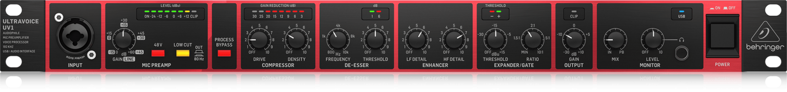 The ULTRAVOICE UV1 is more than just a mic preamp and voice processor – we added one of the best USB audio interfaces with the highest possible resolution and lowest latency. Full 192 kHz sampling rate at a clear 24-bit resolution will make you smile listening to the astonishingly crisp sound you’ll get.
