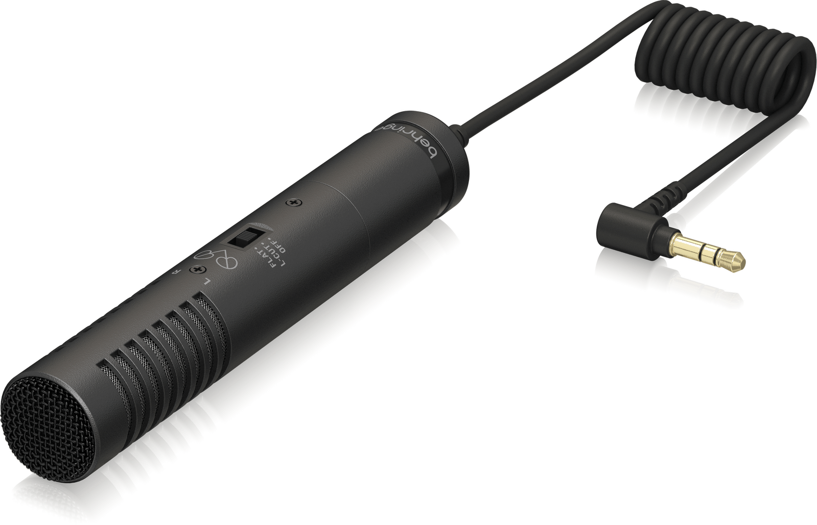Broadcast-quality stereo condenser shotgun microphone with superior audio response for DSLRs, video cameras and most audio recorders