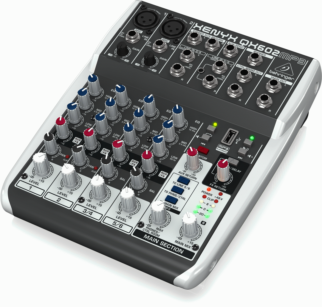 The ultra-compact XENYX QX602MP3 2-bus mixer’s 6 Inputs (2 mic, 2 stereo) allow you to effortlessly achieve premium-quality sound, thanks to its 2 onboard studio-grade XENYX Mic Preamps with available Phantom Power, and our ultra-musical “British” channel EQs. Add to this a high-performance MP3 player for accessing audio files from a USB stick, and a built-in 24-bit, stereo multi-FX processor with presets for studio-class reverb and delay, and the QX602MP3 becomes an incredibly versatile – and amazingly affordable mixer!