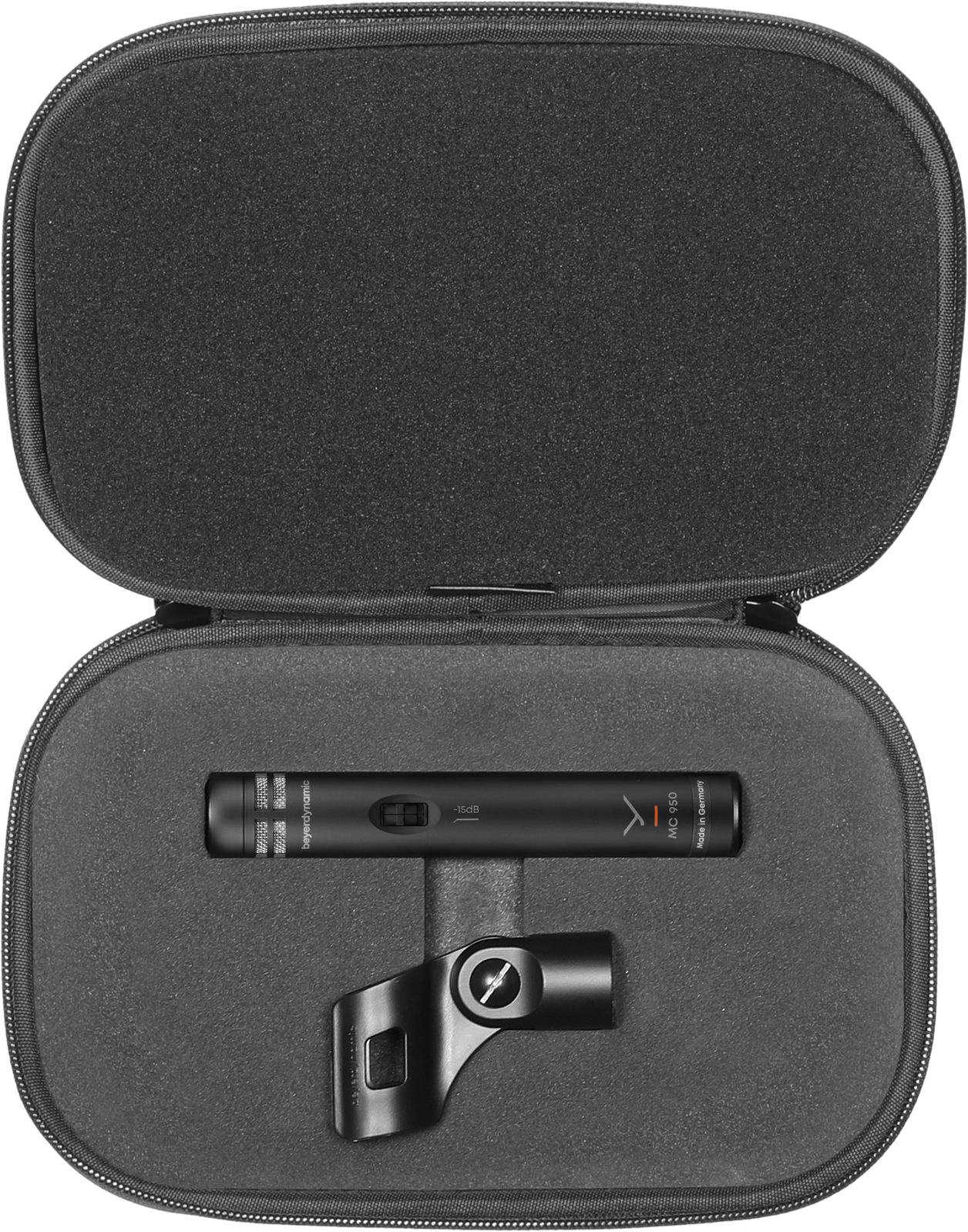 The MC 950 is a flexible small-diaphragm true condenser microphone with a supercardioid polar pattern, switchable -15 dB attenuation and low-cut filter. If you appreciate a clear sound and high impulse fidelity of small-diaphragm condenser microphones, our MC 950 is the right choice.