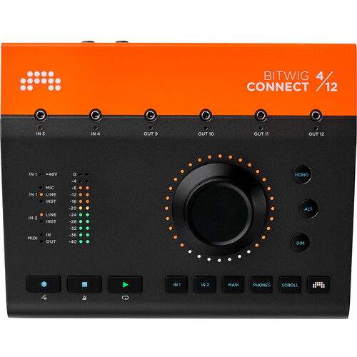 Bitwig Connect 4/12 is a class-compliant, 4‑in/12‑out CV- and MIDI‑enabled audio interface with monitor- and DAW-control functionalities and a unique Bitwig Mode.