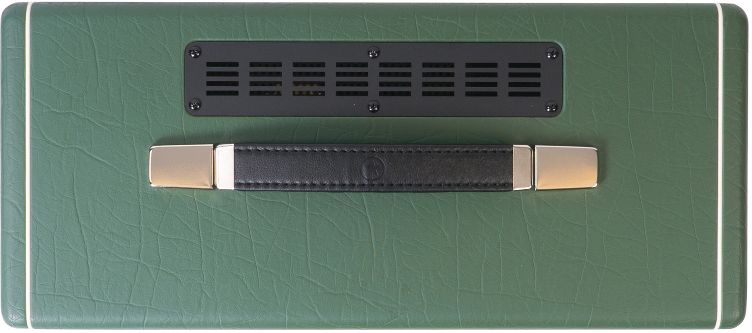 Covered in Jared’s British Racing Green tolex and biscuit fret including illuminated logo
