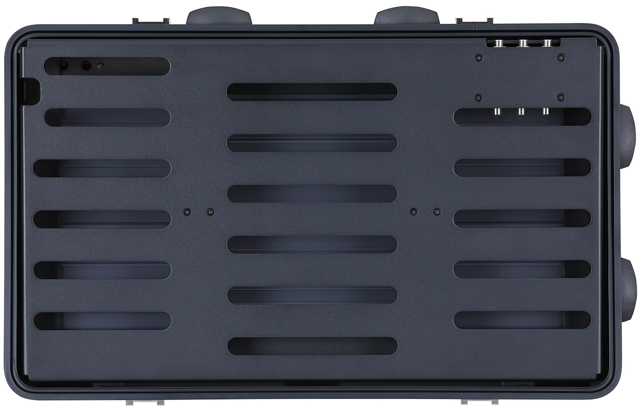The BCB-1000 presents an innovative new approach in pedalboard design that makes traveling with your rig easier than ever. The durable suitcase-style body provides heavy-duty protection and features a retractable handle and built-in wheels for free-flowing transport to and from the gig. Detaching the lid reveals an angled aluminum mounting surface that supports two rows of pedals, with ample space underneath for cable routing and a power supply. And with the onboard junction box, you can plug in and be ready to play in a flash.