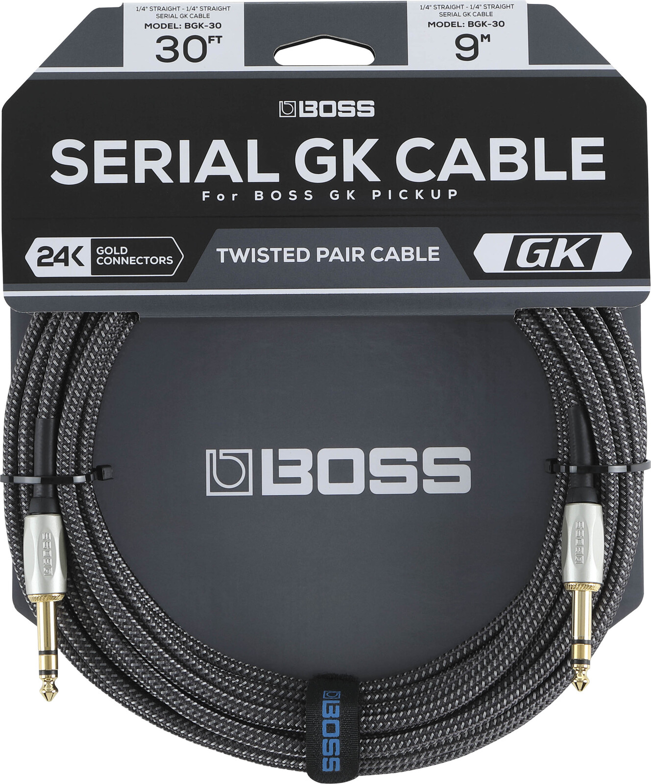 The BGK cable series delivers optimum performance with BOSS guitar synthesizer products that support the Serial GK digital interface, including the GK-5/GK-5B pickups and GM-800 module. Premium BOSS construction features include braided shielding, 24K gold-plated connectors, and a woven outer jacket for tangle-free use.