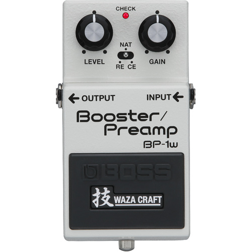 The vintage BOSS CE-1 Chorus Ensemble and RE-201 Space Echo are legendary for their inspiring and influential effect sounds. But they’re also loved for their variable analog preamp circuitry, which instantly infuses any guitar tone with character, body, and richness. With the BP-1W, you can now access these two classic preamp tones in a premium Waza Craft pedal, along with a natural, clear voice that functions as a standard clean boost.