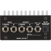 By default, the EQ-200’s footswitches control EQ bypass and memory scrolling, but you can reassign them to turn channels on/off, select specific memories, and more. Control is also possible via external footswitches, and these are freely assignable as well. Alternately, you can connect an expression pedal to control A or B channel levels, or even the overall output (a handy stand-in for a volume pedal). MIDI I/O is also available on mini TRS jacks, letting you operate various functions from external MIDI controllers and chain multiple 200 series pedals to select memories on all of them at once.