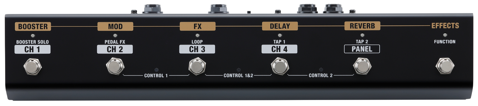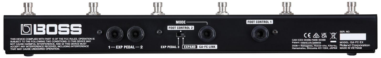 it easier to see changes when switching. And along with two dedicated expression pedal jacks, there’s an additional control jack with a three-way mode selector. It allows you to connect a third expression pedal or use the GA-FC EX for expanded applications.