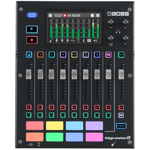 Gigcaster 8 is a powerful all-in-one audio command center purpose-built for musicians who livestream and create audio and video content. It delivers all the tools you need for professional sound in a single desktop interface, along with quick-access live control via faders, knobs, eight assignable pads, and a vivid color touchscreen.