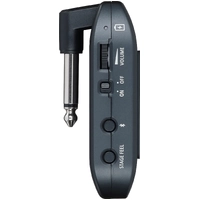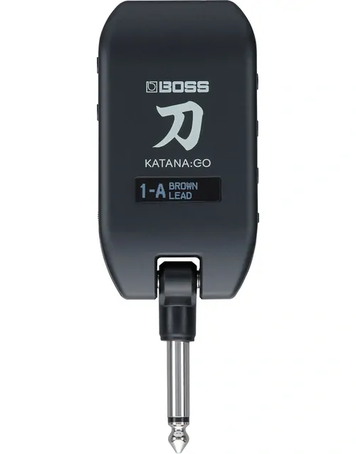KATANA:GO delivers premium sound for everyday playing without the hassle of amps, pedals, and computer interfaces. Simply plug it in, connect earbuds or headphones, call up a memory, and start rocking. Onboard controls provide access to volume, memory selection, and other essential functions, and you can easily view the current memory and tuner with the built-in display. The rechargeable battery provides up to five hours of continuous playing time, and the integrated 1/4-inch plug folds down to create a pocket-size package that’s ready to travel anywhere.