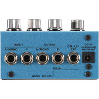 By default, the MD-200’s multi-function footswitches control bypass, memory scrolling, and tap tempo, but you can easily reassign them to alternate functions as needed. External control is also possible via footswitches or an expression pedal, and MIDI I/O is even provided on space-saving mini TRS jacks. Via MIDI, you’re able to chain multiple 200 series pedals and select memories on all of them at once, and also control various functions from MIDI devices like the ES-8 and ES-5 effects switchers.
