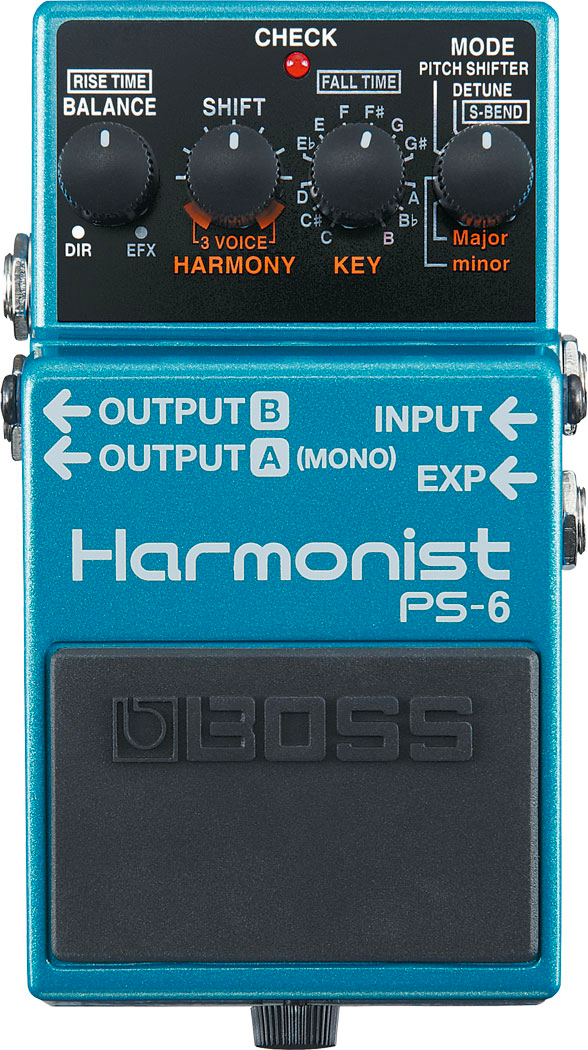 Meet the new BOSS harmonist, with four intelligent pitch-shift effects and three-voice harmony in one convenient unit. Among the effect modes are Harmony, Pitch Shifter, and Detune, plus the all-new Super Bend for authentic pedal-bending effects and wild three- and four-octave pitch sweeps. You can even control pitch with an optional expression pedal. The harmony function is fast and simple to use, and supports a variety of interval patterns. It’s easy to create rich, three-voice harmony: choose a major or minor key, and set SHIFT to 3-VOICE—that’s it! The PS-6 Harmonist is an unbeatable combination of superior sound quality, ease of use, and powerful pitch effects, all under one hood.