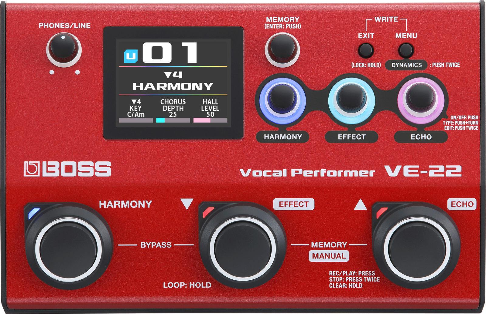 Take charge of your vocal sound with the VE-22, a portable multi-effects toolbox specially designed for singers. Perform with a diverse library of high-quality BOSS processing, from basic studio enhancement to dramatic voice-changing effects. Expand your range with real-time harmonies. And get creative with the free-flowing interface and versatile features for practice, recording, and online streaming. With the VE-22 in your chain, you’re primed and ready to deliver memorable, high-impact vocal performances everywhere you sing.