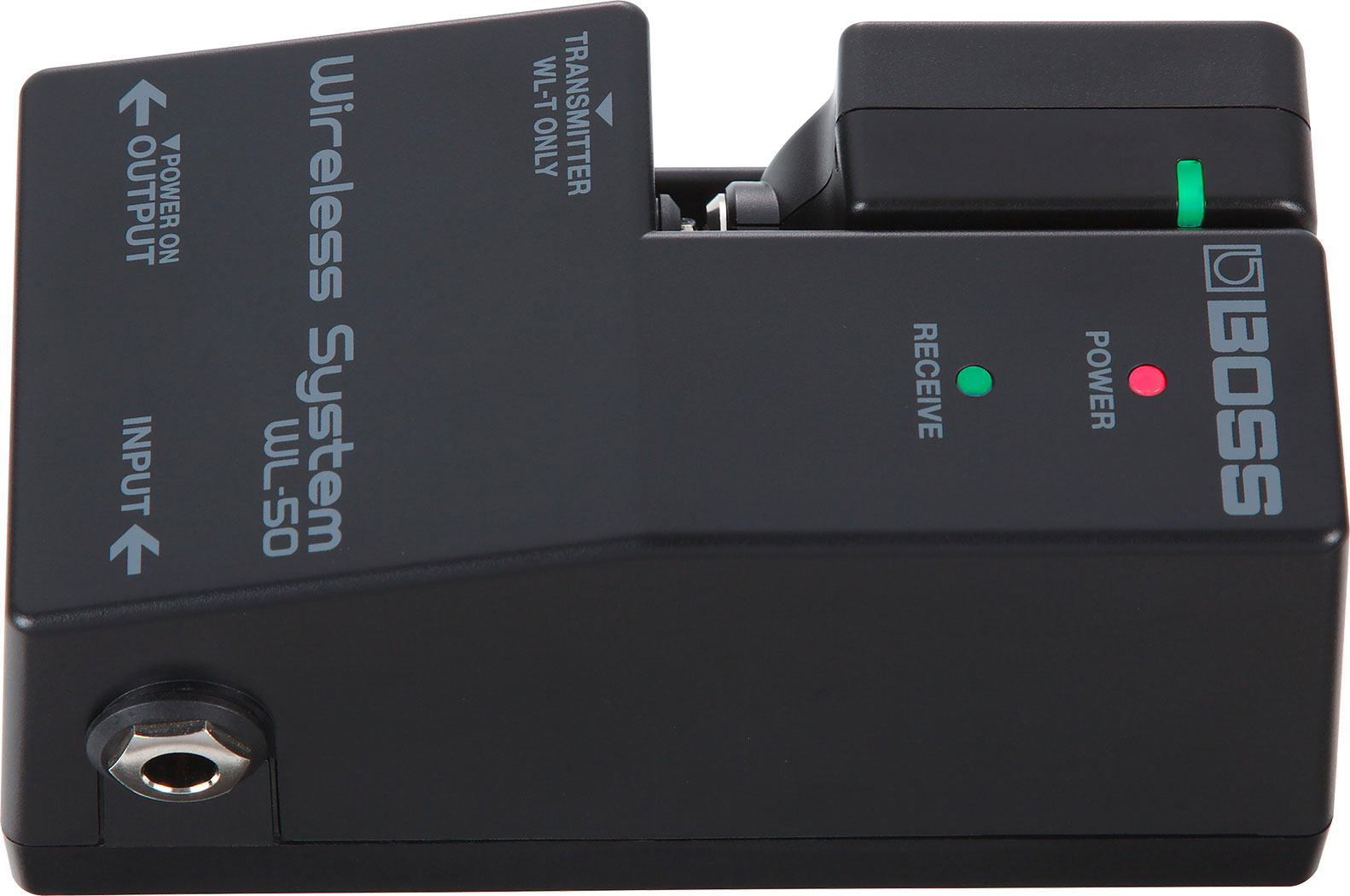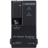 The WL-50 has a slightly smaller footprint than a standard BOSS compact pedal and can be powered just like your other stomps, making it an easy addition to any pedalboard setup. Simply place it at the beginning of your chain and connect the receiver’s output to the first pedal. The receiver is also equipped with a regular ¼-inch input jack, so you can always use a traditional guitar cable in a pinch.
