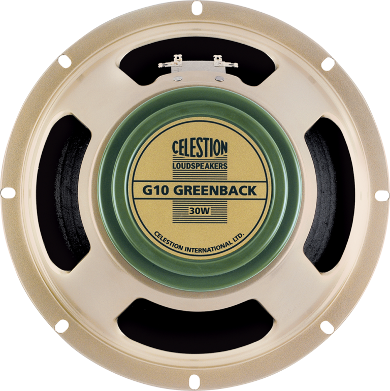 This guitar speaker was developed to recapture the legendary sound of Celestion’s 1970s 10s – a 10 speaker with a surprisingly meaty tone. Low in output but with the weighty low-end balance of a 12-inch speaker, the G10 Greenback features a complex mid-range and smooth vintage top-end. In small combos this speaker adds real class and when combined in a 4×10 gives rise to a raunchy full-bodied tone rich in low-end thump.