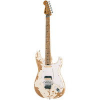 Available in a heavy White Relic finish with a 3-ply white pickguard, relic'd chrome hardware and reverse licensed Fender® Strat® headstock